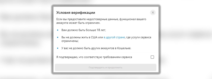 Далее если вы пользуетесь кошельком впервые, он попросит вас пройти верификацию аккаунта: