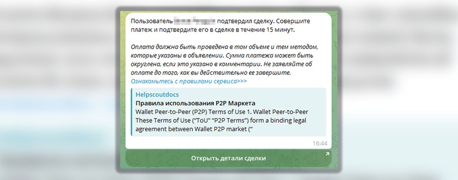Когда подтверждение будет получено, кошелек выдаст вам реквизиты продавца, на которые надо совершить платеж. На все про все у вас будет 15 минут - очень важно уложиться в это время. Произведите перевод нужной суммы по реквизитам продавца и нажмите “Платеж отправлен”.