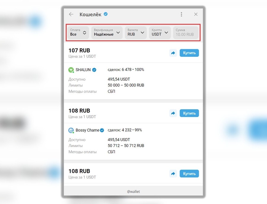 В верхней части вкладки будет располагаться меню фильтрации - через него вы сможете отсортировать продавцов и найти подходящее вам предложение.
