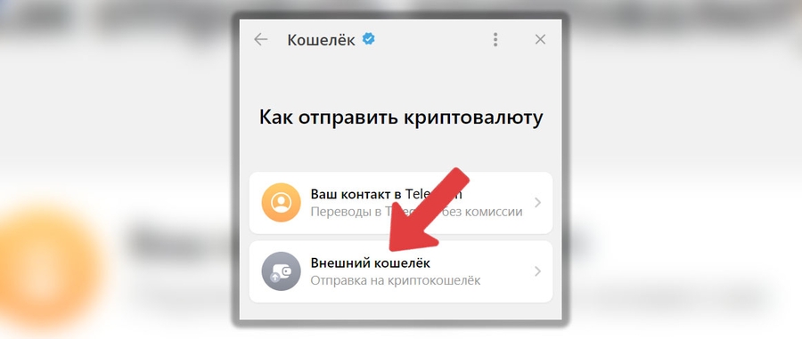 Выберите “Внешний кошелек”: