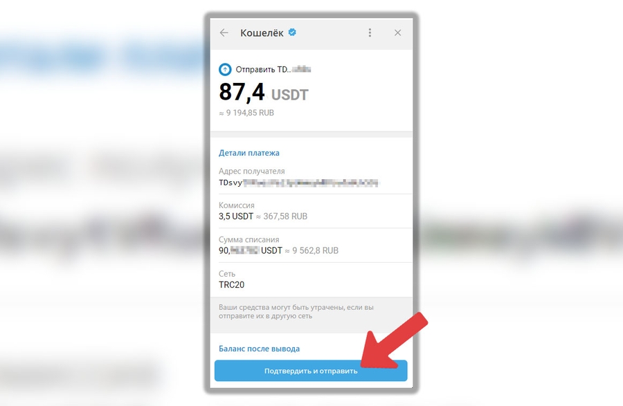 Обратите внимание, что при переводе USDT в сети TRC-20 вы заплатите 3,5 USDT комиссии - она стандартна для Telegram кошелька и не зависит от суммы вашего перевода.