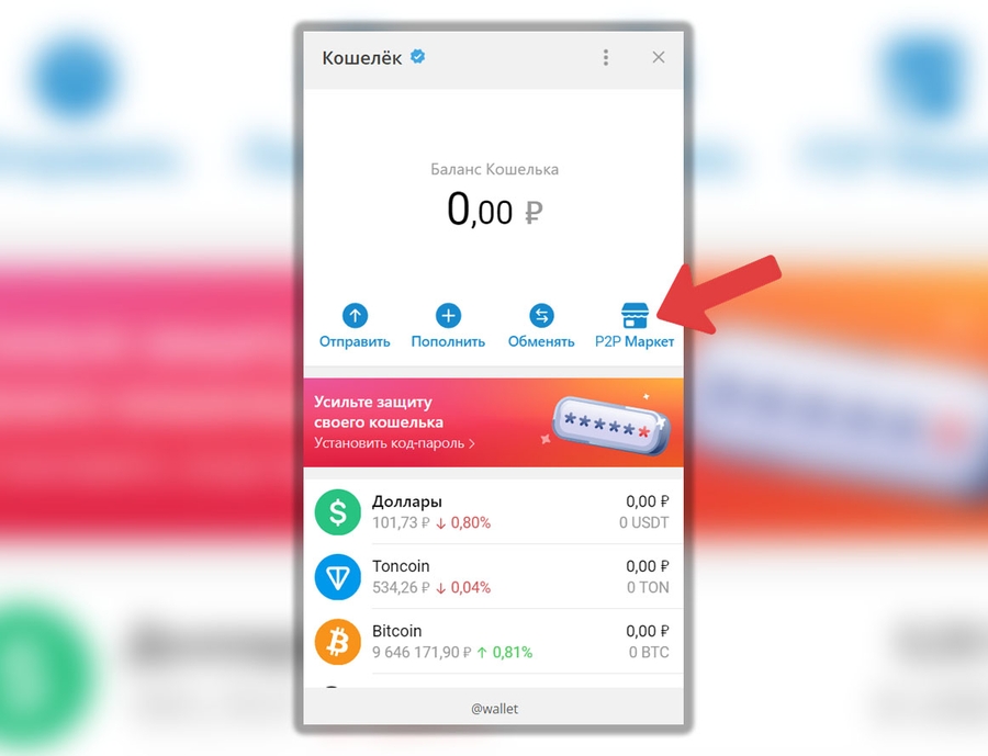 Это безопасный кошелек, в котором вы можете покупать и продавать рубли/криптовалюту, используя P2P-торговлю, т.е. обмениваться средствами с другими пользователями Telegram кошелька.
